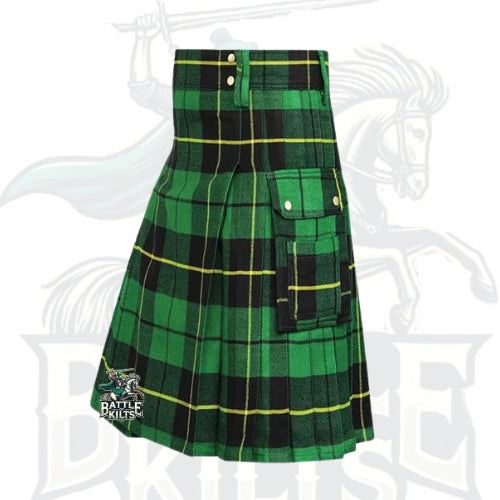 The Modern Wallace Hunting Tartan Utility Kilt by Battle of Kilts blends traditional Scottish hunting tartan heritage with contemporary utility design. Crafted from premium Wallace Hunting tartan fabric, this kilt combines classic patterns with rugged practicality. Reinforced stitching, adjustable straps, and deep cargo pockets provide lasting comfort and functionality, making it perfect for outdoor adventures, Highland festivals, or casual wear. The pleated design ensures freedom of movement while maintaining a stylish, modern look. Ideal for men who value tradition, durability, and everyday practicality, the Modern Wallace Hunting Tartan Utility Kilt is a versatile garment that honors heritage while meeting modern lifestyle needs.