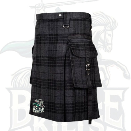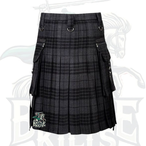 The Night Watch Punk Rave Tartan Utility Kilt by Battle of Kilts is a bold fusion of Scottish tradition and contemporary punk style. Crafted from premium dark tartan fabric, this kilt features edgy punk-inspired detailing while retaining the comfort and practicality of a utility kilt. Reinforced stitching, adjustable straps, and deep cargo pockets make it durable and versatile for festivals, concerts, club events, or casual outdoor wear. With its unique design, the Night Watch Punk Rave Tartan Utility Kilt delivers freedom of movement and a striking fashion statement. Perfect for men who want heritage, functionality, and a modern rebellious edge in one standout garment.