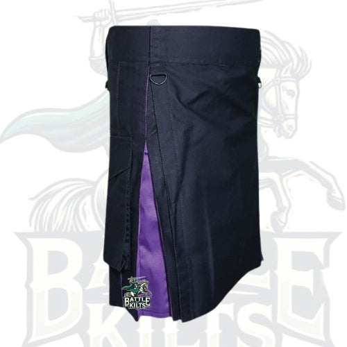 Stand out with the Black and Purple Utility Hybrid Kilt, expertly crafted by BattleOfKilts, a trusted brand renowned for premium kilts and hybrid designs. Perfect for casual wear, gothic events, festivals, concerts, or Highland-inspired occasions, this utility kilt combines bold black and purple styling with practical functionality, delivering a modern, versatile, and edgy look.