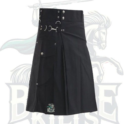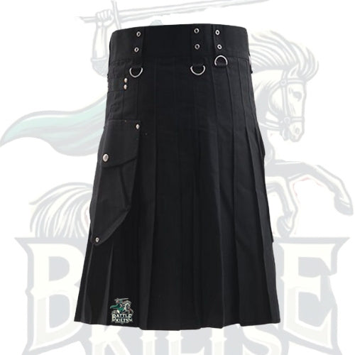 Step out confidently with the BattleOfKilts Black Cargo Kilt—where heritage meets modern utility!