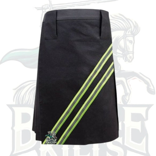 Stay bold, visible, and stylish with the Black Firefighter High Visibility Reflective Kilt by Battle of Kilts. Inspired by firefighter bunker gear, this kilt is handcrafted from durable fabric and designed with reflective safety strips for maximum visibility in dark or low-light conditions. It features utility side pockets for carrying essentials and adjustable buckle straps for a secure, comfortable fit. Perfect for festivals, parades, cosplay, or themed workwear, this kilt combines rugged firefighter style with Scottish heritage, making it a standout choice for men who value both function and fashion.