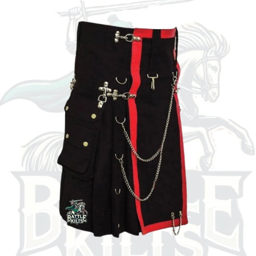 Step up your style with the BattleOfKilts Black Stylish Utility Kilt with Decorated Apron! Combining modern utility and Scottish tradition, this kilt features a decorated apron that adds flair while maintaining functionality. Crafted from premium, durable fabric, it ensures comfort, long-lasting wear, and practicality for everyday use, casual outings, festivals, or special events.