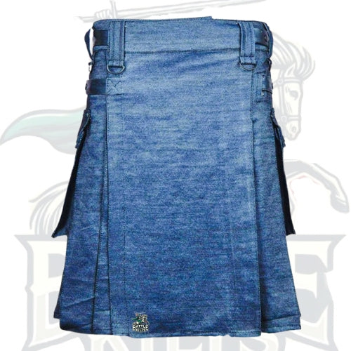 Der Blauer Denim-Utility-Kilt für aktive Männer von Battle of Kilts vereint robustes Design mit moderner Funktionalität. Hergestellt aus strapazierfähigem Denim in kräftigem Blau, bietet dieser Kilt maximalen Tragekomfort und einen markanten Look. Mit praktischen Seitentaschen und verstärkten Nähten ist er ideal für Outdoor-Aktivitäten, Festivals, Freizeit oder Arbeitseinsätze geeignet. Ob beim Wandern, auf Veranstaltungen oder im Alltag – dieser Utility-Kilt sorgt für Bewegungsfreiheit, Stil und Langlebigkeit. Battle of Kilts steht für authentische Handwerkskunst, die Tradition und moderne Mode perfekt verbindet.