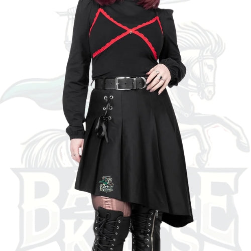 Step out in style with the Battle of Kilts Delilah Pleated Lace-Up Mini Skirt, crafted from soft, high-quality fabric for all-day comfort. Featuring elegant pleats and a trendy lace-up detail, this skirt blends classic sophistication with modern edge. The flattering mid-rise fit ensures confidence and ease, making it perfect for casual outings, parties, or dressy occasions. Pair it with your favorite tops, jackets, or accessories to create versatile, head-turning looks that showcase your fashion-forward style.