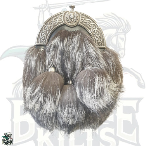 This sporran includes decorative tassels that enhance traditional Highland movement and flair. A secure snap or buckle closure keeps personal items safe, while the included adjustable chain strap ensures comfortable, authentic wear at the front of your kilt. The combination of luxurious silver fox fur, premium leather, and antique thistle detailing makes this sporran a standout accessory for any formal Highland outfit.