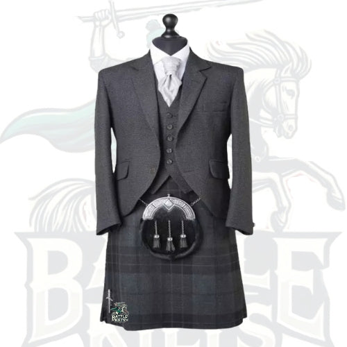 Your complete Gray Tweed Jacket with Night Watch Tartan Kilt Outfit includes: