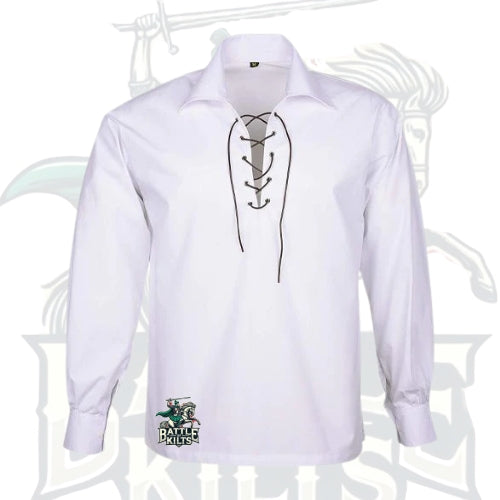Embrace the timeless elegance of Scottish heritage with the Jacobite White Ghillie Kilt Shirt, expertly crafted by Battle of Kilts. This classic Highland shirt represents centuries of tradition, designed for those who appreciate authentic style and exceptional comfort. Perfect for weddings, ceilidhs, Highland games, or formal gatherings, this shirt completes your kilt outfit with sophistication and authenticity.