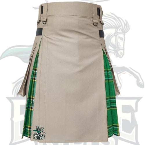 Step into a bold blend of Highland pride and modern functionality with the Khaki & Irish Green Hybrid Kilt for Men, exclusively from BattleOfKilts. This tactical-style hybrid kilt combines rugged outdoor performance with the rich tradition of Scottish and Irish heritage — making it perfect for festivals, hiking, or everyday adventure.