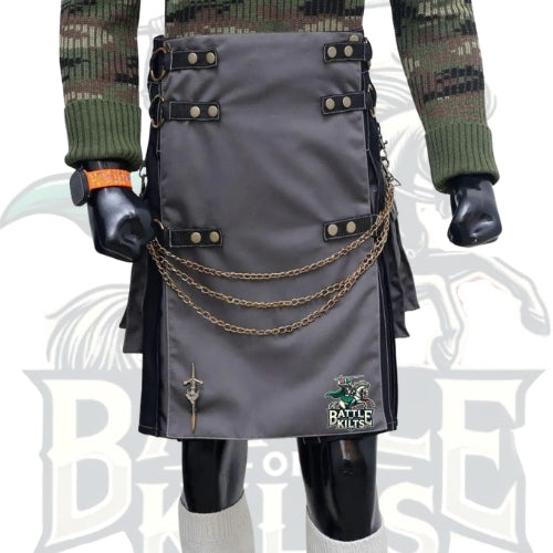 Unleash your inner warrior with the Men’s Tactical Hybrid Kilt – Black and Grey Gothic Kilt with Chains and Metal Hardware from BattleOfKilts. This striking hybrid kilt fuses traditional Scottish craftsmanship with modern gothic styling, built for men who lead with strength, confidence, and individuality.