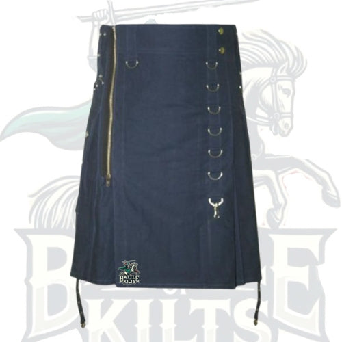 Redefine versatility with the BattleOfKilts Modern Navy Blue Utility Kilt with Side Zip—a perfect blend of style, strength, and practicality.