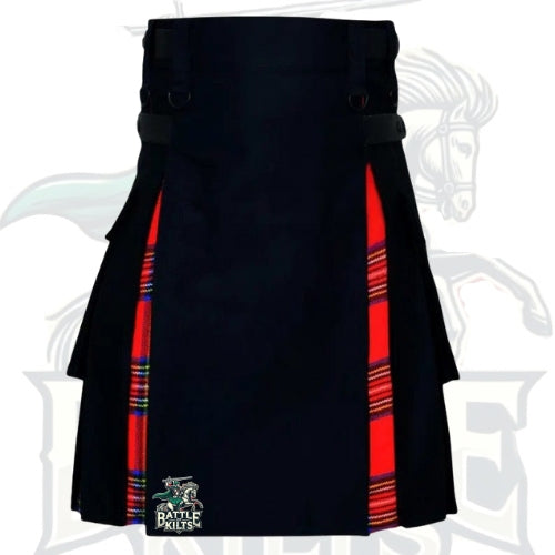Embrace the perfect blend of Scottish tradition and modern utility with the Scottish Handmade Hybrid Utility Black Cotton & Royal Stewart Tartan Kilt, exclusively crafted by BattleOfKilts. Designed for men who honor heritage yet demand practicality, this kilt combines rugged style with timeless Scottish identity.