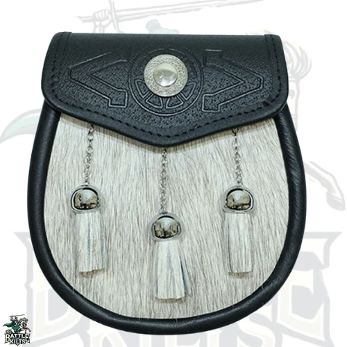 The sporran is traditionally accented with three tassels, suspended from decorative chains, adding movement and classic Highland flair. A secure snap or buckle closure ensures your essentials are safely stored, while the included adjustable chain strap allows comfortable and authentic wear at the front of the kilt. Its versatile design makes it perfect for both everyday Highland wear and semi-formal gatherings.