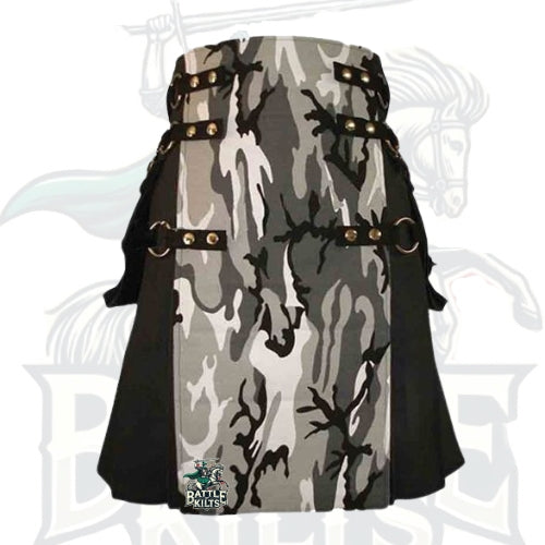 Elevate your alternative fashion and tactical style with the Urban Camo Gothic Utility Kilt with Black Cotton, expertly crafted by BattleOfKilts, a trusted brand known for premium kilts and hybrid designs. Perfect for casual wear, gothic events, festivals, concerts, or outdoor activities, this utility kilt combines rugged urban camo with versatile black cotton for a striking, contemporary look.